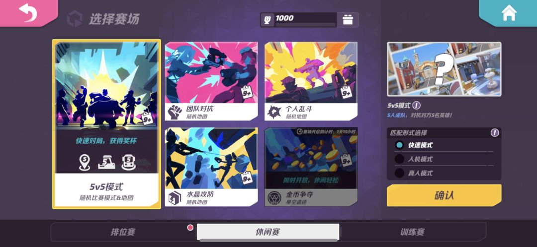 (3)5v5模式增加“匹配形式”选择(快速模式/人机模式/真人模式)。