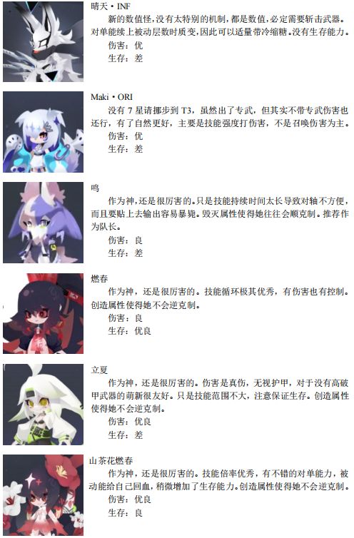 因为本攻略准备改版,因此暂时先不详细叙述角色...
