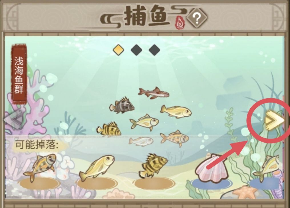 注意:下图箭头标注可翻页捕鱼,因为不起眼所以很多人看不见