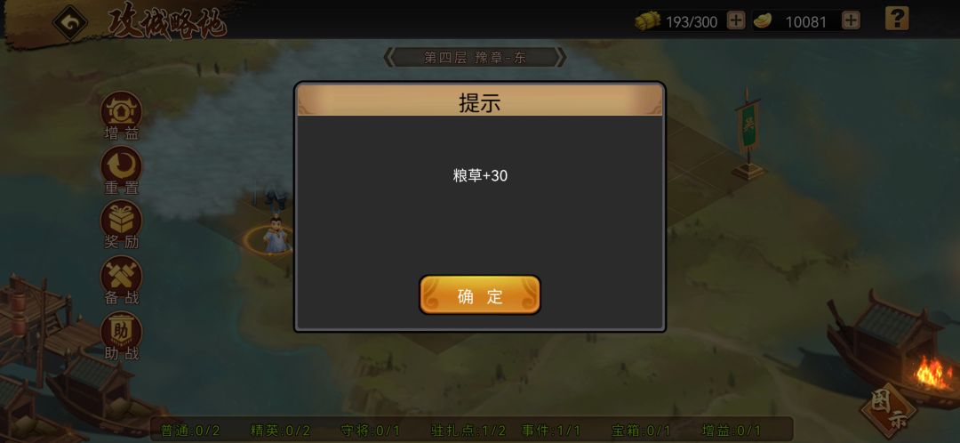 探索、挑战普通、精英和守关主将以及一键快速探索上一层关卡都需要消耗粮草,攻城略地没有粮草寸步难行!为了确保每周最大化获取援军令材料,粮草的锱铢必较很有必要,周一三点系统重置300粮草,早上起来领委托任务时可以率先消耗一波,让它开始自然回复。普通玩家建议每个地图的普通和精英关口全都要打,因为很有可能到后面一两座主城,你的战力和副本技艺不足以支撑你通关,这是普遍玩家需要面对的事实,没必要寻求快速开启下一关卡而舍弃一些收益。