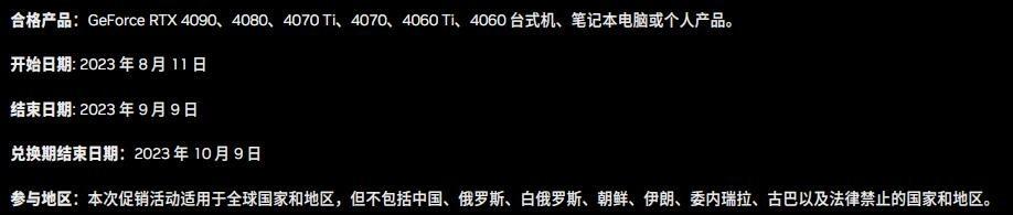 英伟达和《守望先锋2》联合推出活动,活动于8月11日开始,限时购买符合条件的GeForce RTX 40系列显卡、台式电脑或笔记本电脑,会获赠《守望先锋2》终极捆绑包。但这项活动不允许中国等国家参与。