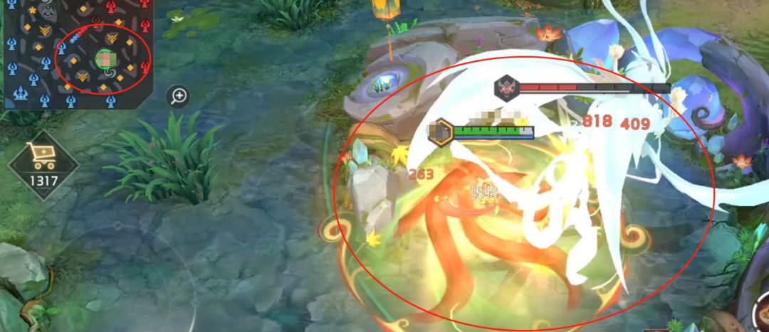 接着是位于上图中的小boss,这个敌人会在战斗开始一段时间后登场,击杀这个敌人后我们角色的技能与普攻可以对敌人减速,在前中期抓人方面会有不小的帮助,并且我们的战斗路线上还会有“始祖幼龙”这个友方出现,进一步提高我们的推搭效率。