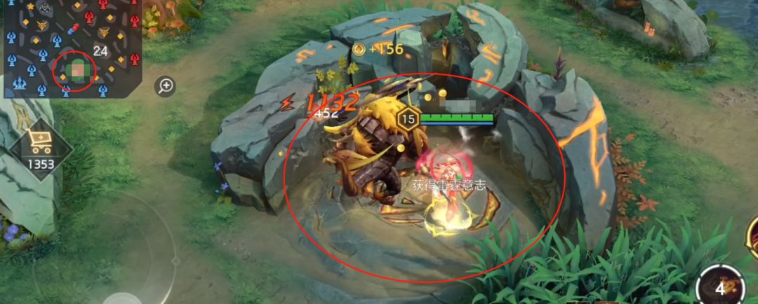 那么接着我们再来简单说下地图上的部分怪物和其所带的增益buff效果,首先上图中这个位置的野怪是一个精英野怪,会掉落下面这个“雷霆意志”buff,主要提升我们的伤害和对敌方进行减速,在初期的打野或抓人过程中有不错的帮助。