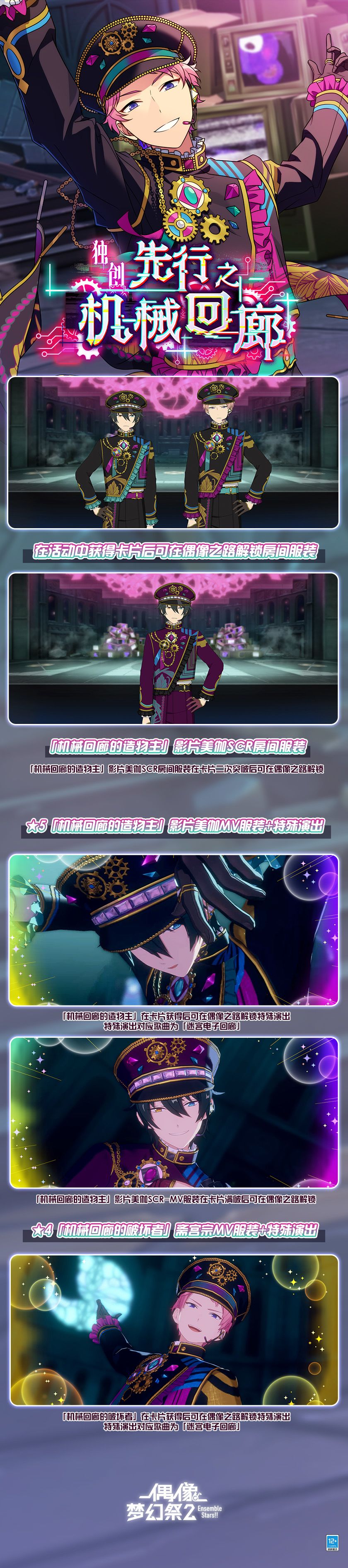 此外,通过演唱会收集【机械回廊丝带】,在丝带兑换所中可兑换【钻石】、【活动回忆硬币】、【活动限定服装图纸】、【ES硬币】、【各色宝石】多种道具。