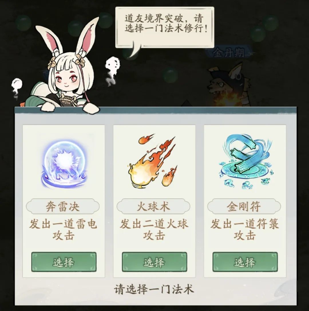 玩家可以升级两级,每升一级就可以获得一个技能,奔雷决、火球术、金刚符三个技能中选择。这里建议玩家升第一级靠捡地上的绿珠子升级,上来打怪太慢了,第二级的时候再打怪升级;