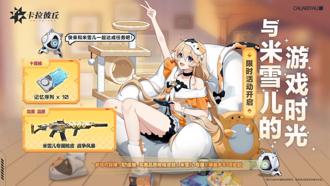 1.限时活动开启「与米雪儿的游戏时光」完成每日任务必得10连+完美品质皮肤/5连