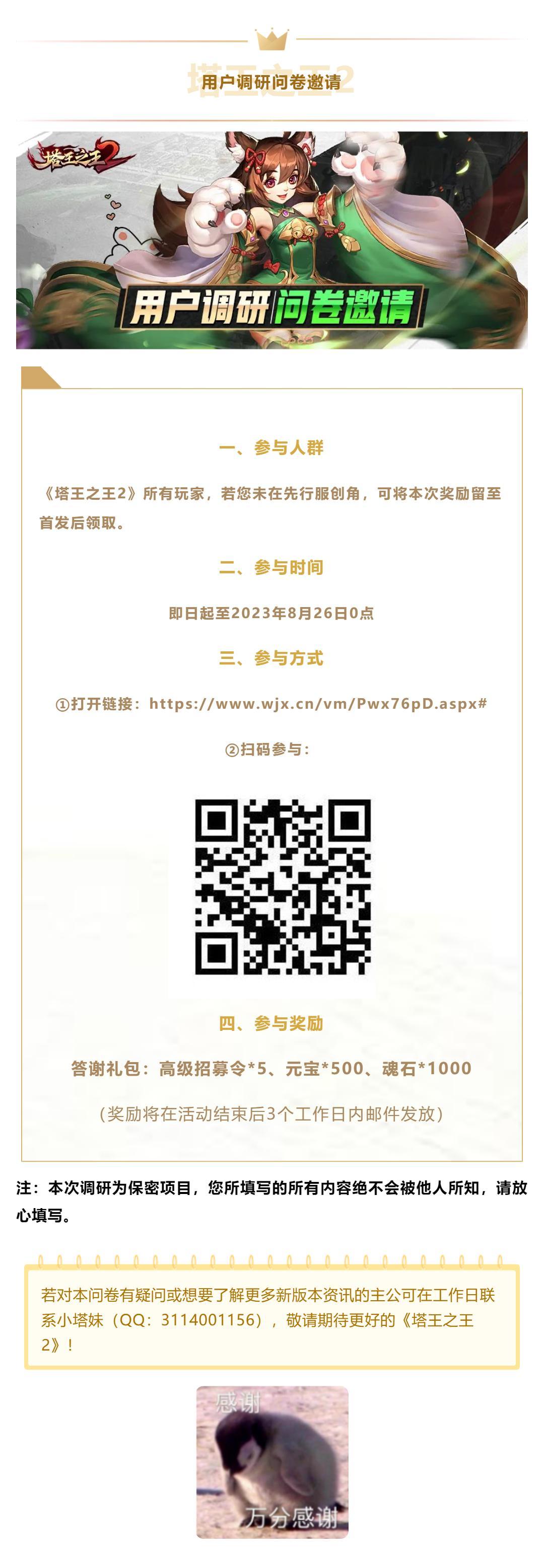 【有奖问卷】| 《塔王之王2》首份用户调研问卷,礼包送给最在意的你!