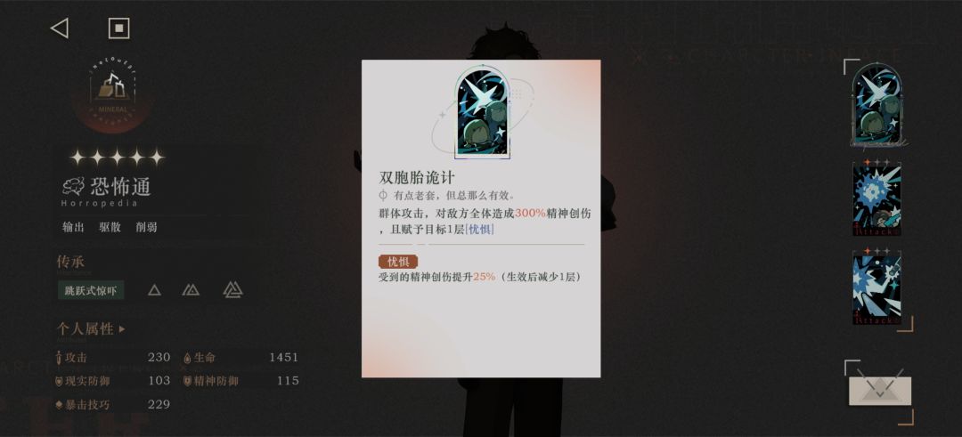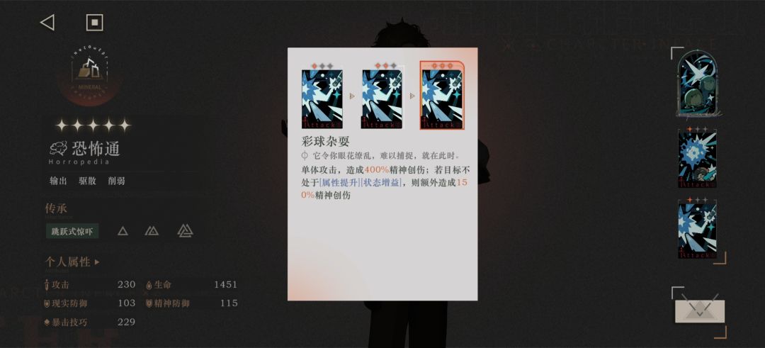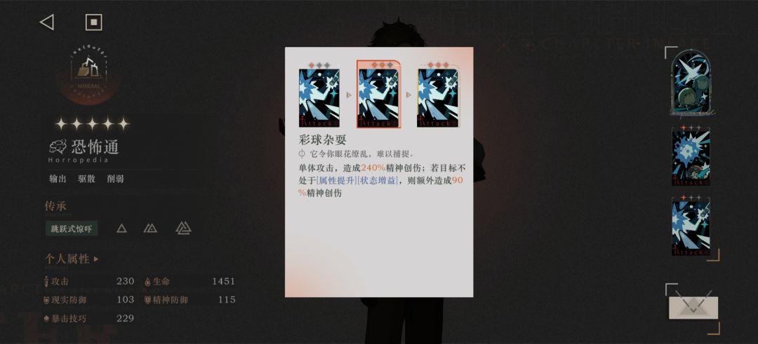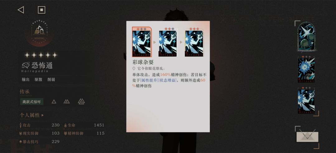 ①前言:恐怖通是一名岩灵感输出型角色,适合担任队内副C以及驱散工具人,但是上比不过狗(真丶不如狗)平级比不过X。。。