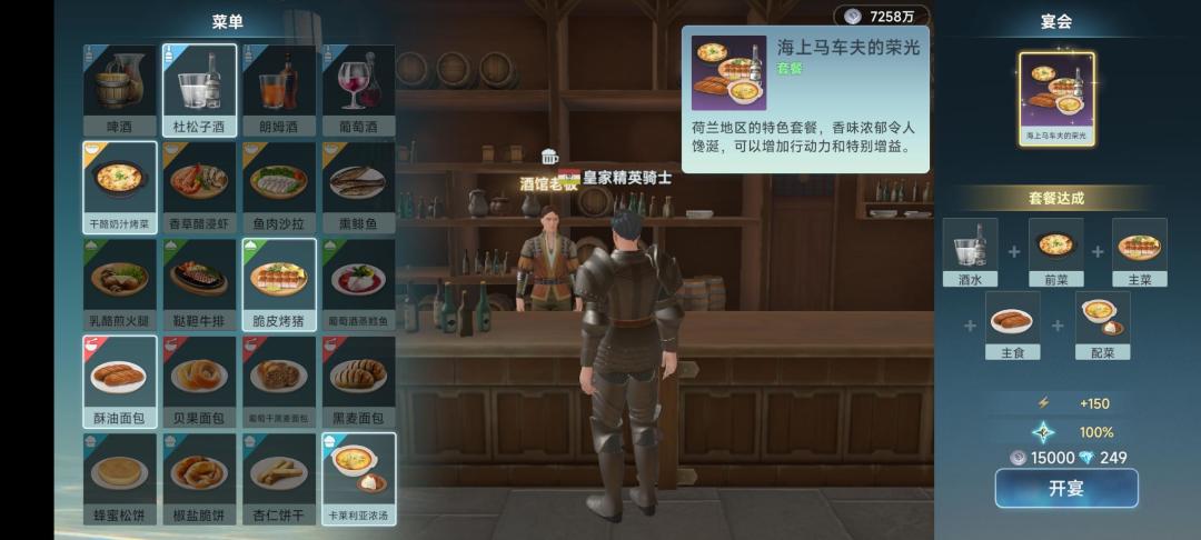 酒吧恢复体力的套餐
