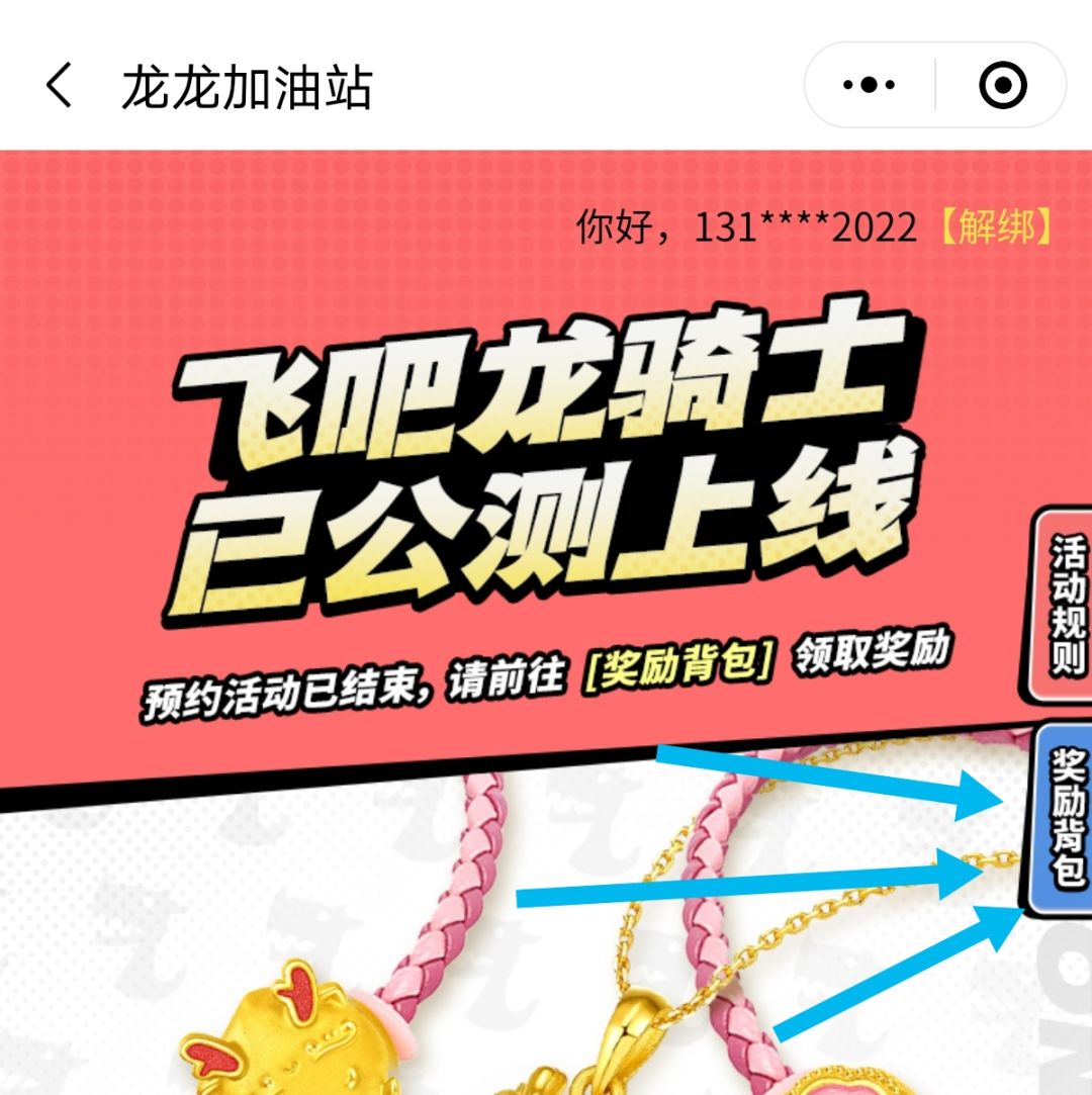 step1:打开龙龙加油站小程序,点击【奖励背包】