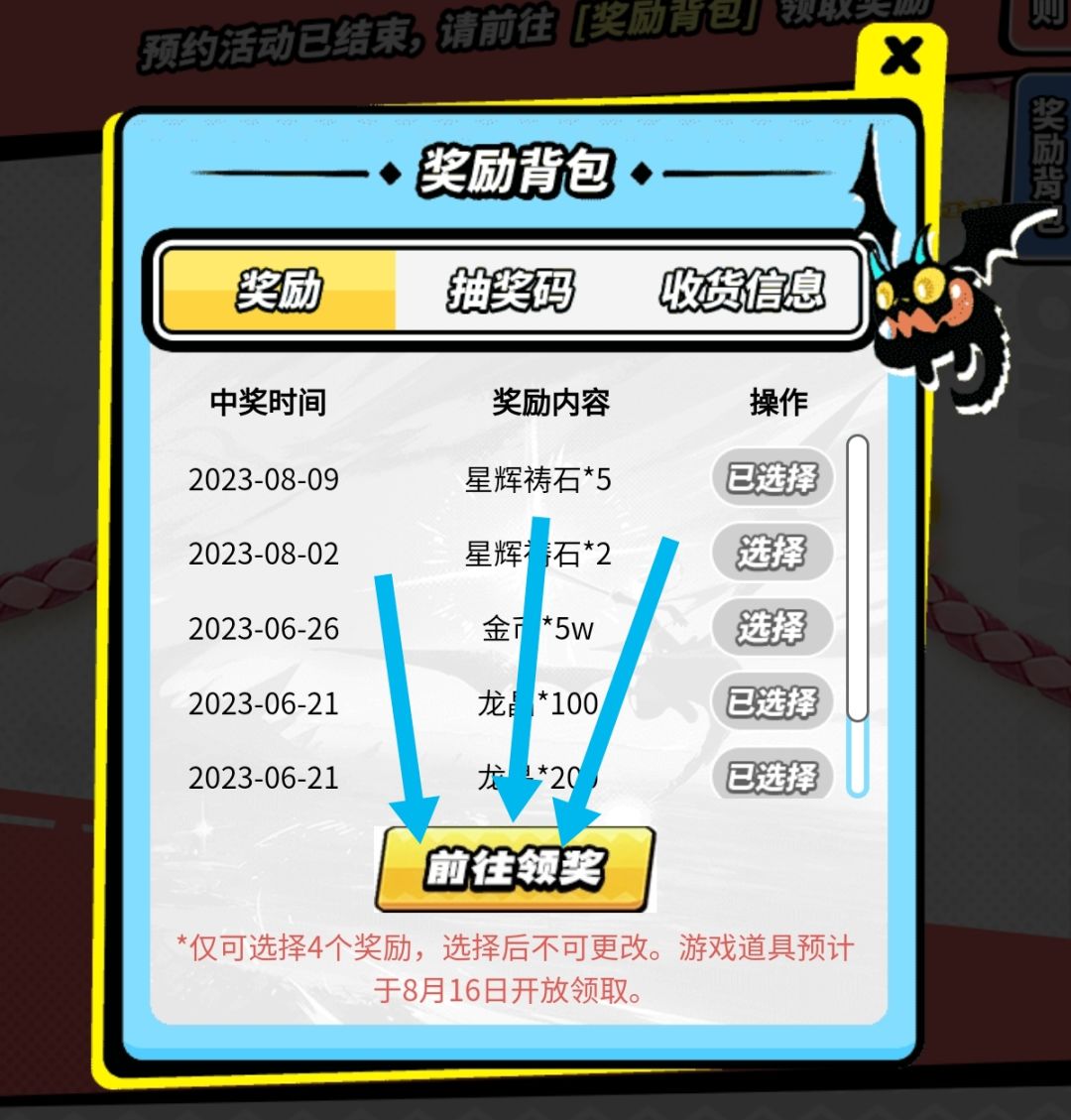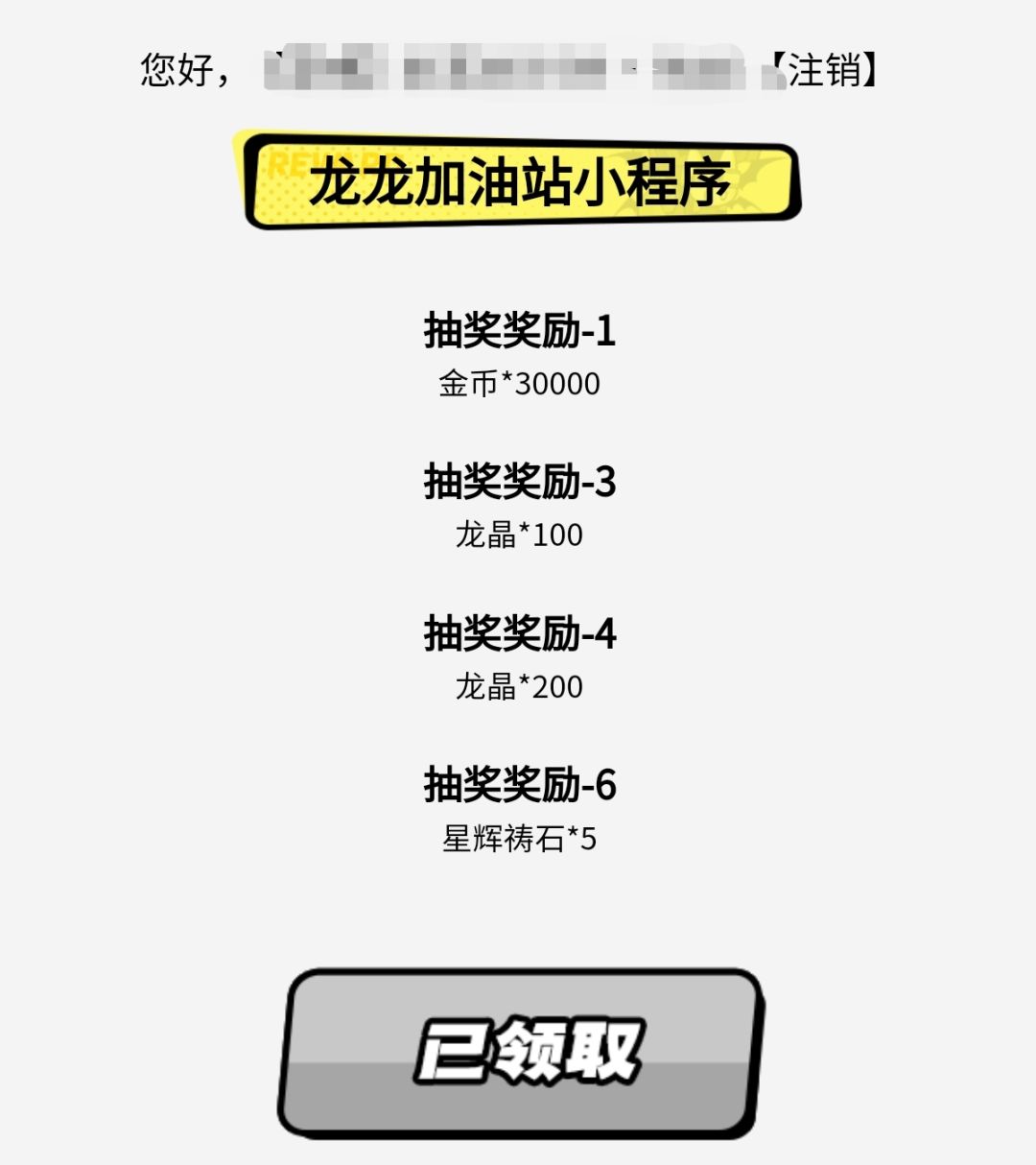 龙龙加油站小程序【奖励背包】处确认选择您的游戏道具后