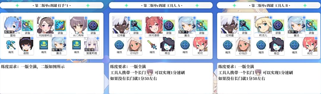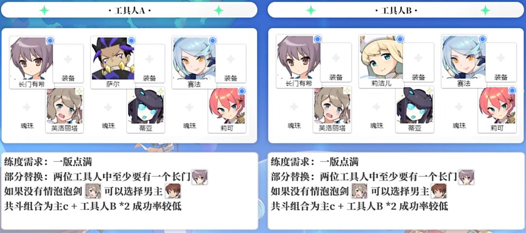 对主c要求更高的单c队伍,同时工具人至少要有一个有长门,如果是主c配两个b盘翻车率会变高。
