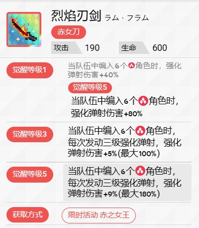 作为火PF的辅助位武器,其在纯色火PF中出现的频率还是相当高的,其PF3给予的暖机加成与后续火PF的主要体系火减c也相当契合,总的来说是一个相当不错的武器。