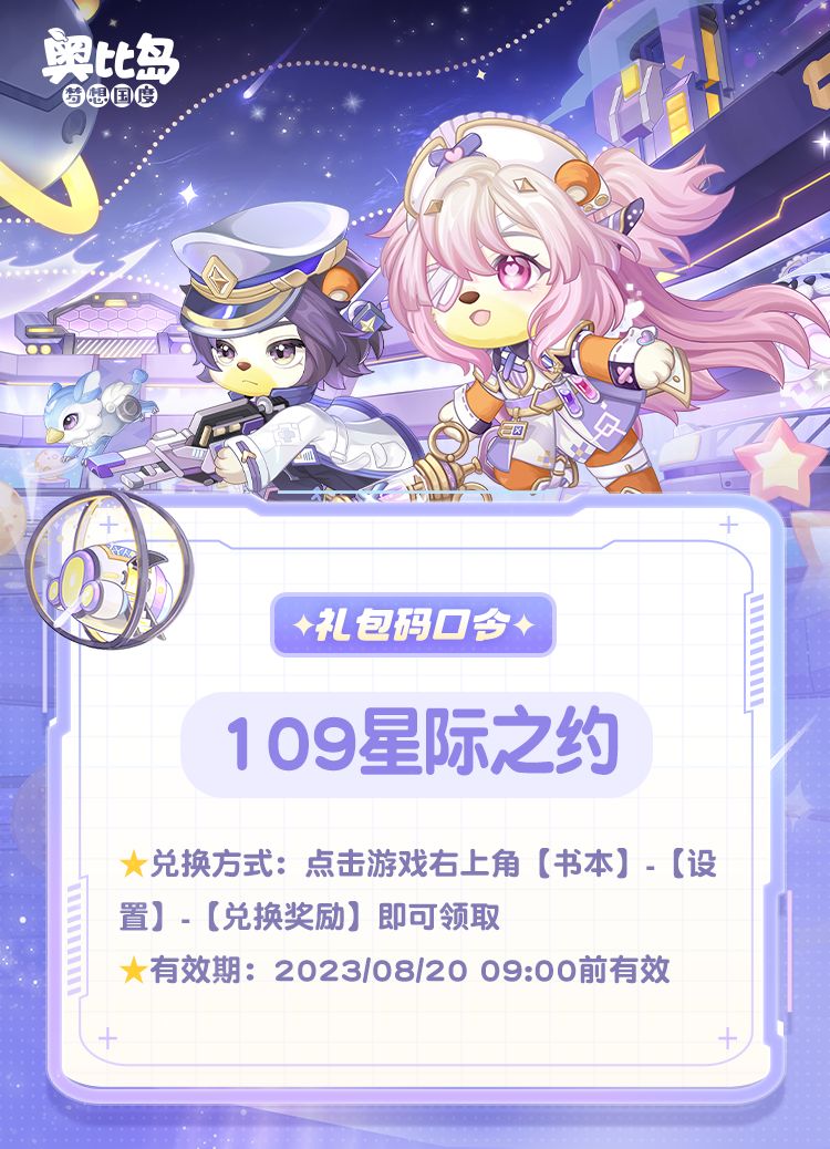 恭喜小奥比们成功解锁惊喜兑换码【109星际之约】!奥比们记得尽快上岛进行兑换,避免逾期哦~