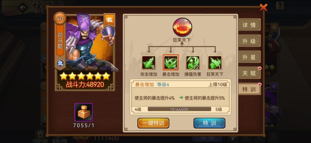 在激活援军令武将,对其进行升级、升星,天赋和特训技能培养,提升的属性和战力增长都是永久存在的,无需上阵、只要打造了便能提升角色全属性,绝对是玩家新的属性和战力增长点!