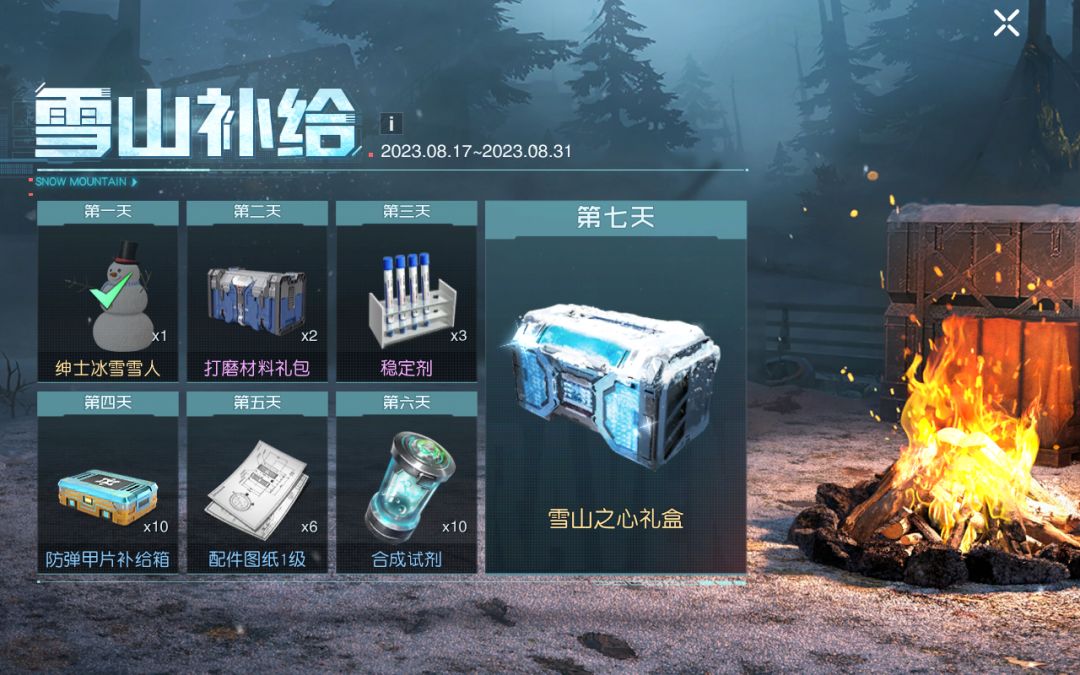在行动开始后,每天前往主题页—雪山补给页面即可领取雪山补给,第一天即可领取特殊庄园摆件“绅士冰雪雪人”,累计领取七次还能够获得“雪山之心礼盒”的奖励。