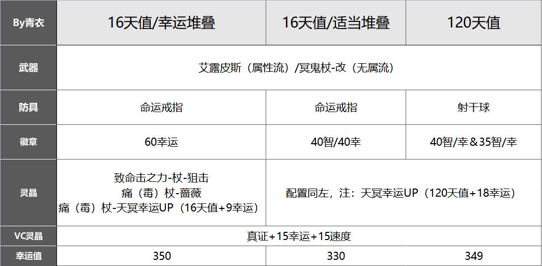 堆叠350幸运输出最为稳定,技能保持最大倍率,但会牺牲过多的智力加成;