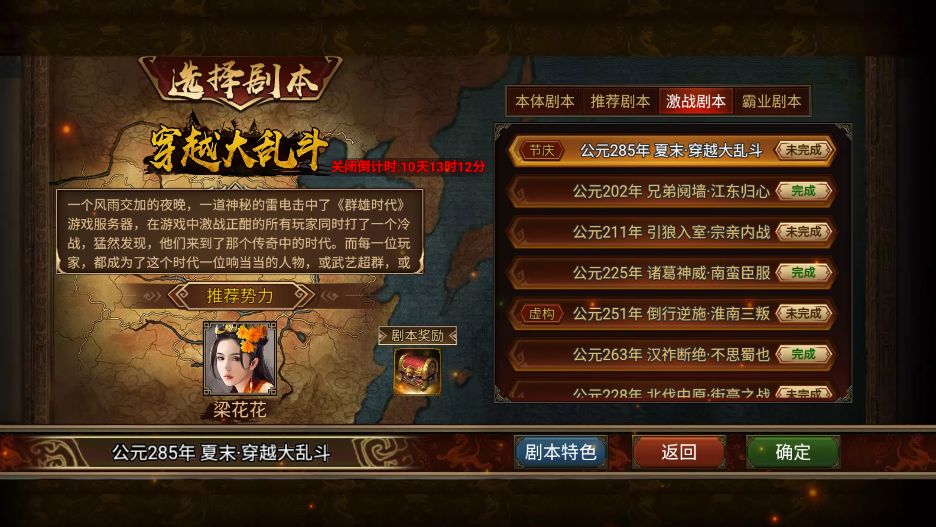 在今天的更新后,我们开放了可以与其他“群友”一同征战四方的『夏末·穿越大乱斗』剧本,记得在时限内完成剧本任务拿到 金刀、玉符和武勋 奖励哦~~