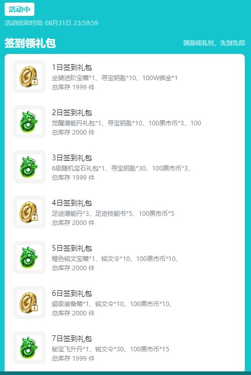 活动三:每日签到活动;