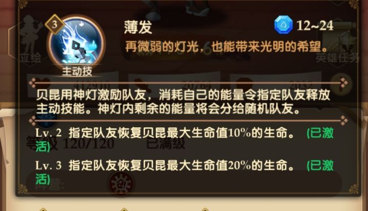 贝昆的觉醒技能,队友每发动三次主动技能,贝昆可以为指定玩家提供额外的星纹技能(三觉是4次)。