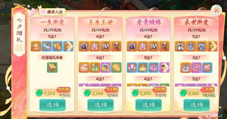 2)有多种价格礼盒可以选择,不同价格礼盒均可在礼盒范围内自选外观物品;