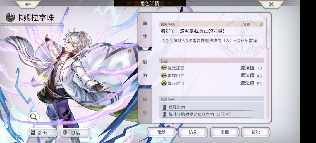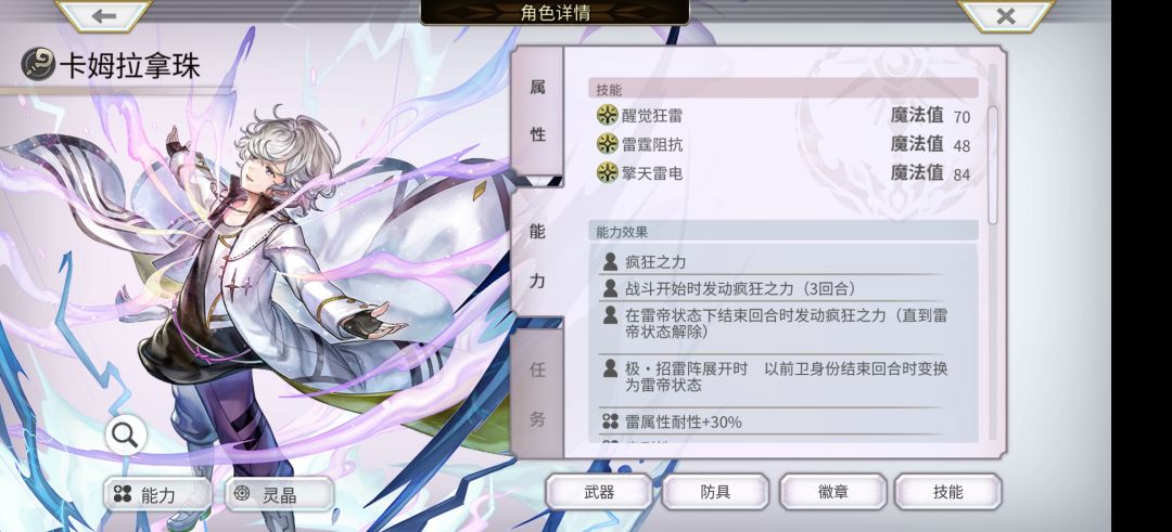 输出的核心是【雷帝】状态,但是【雷帝】必须在AZ雷的回合末才能进入,展开AZ雷的回合倍率只有4.0,输出能力很低。AZ雷3回合,除掉第一回合进状态,实际卡姆拉拿珠的有效输出只有两回合,加之倍率不高,非常奇怪