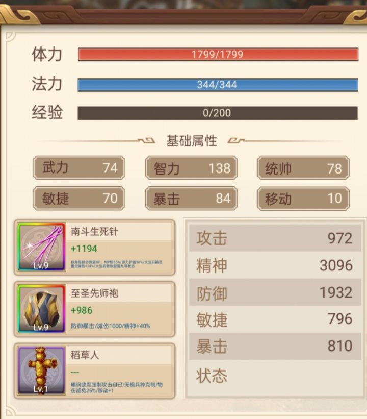 南斗生死针+至圣先师袍(紫色+4也能用)+稻草人