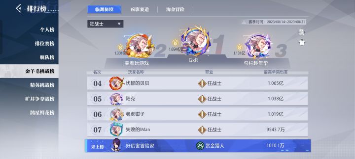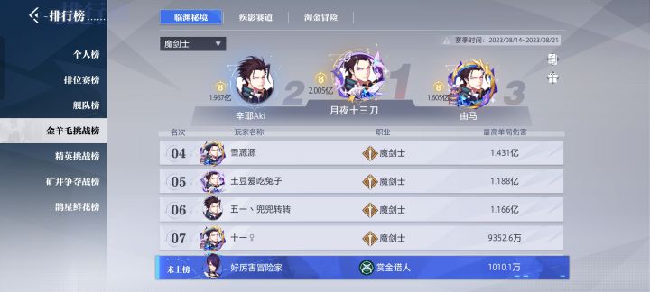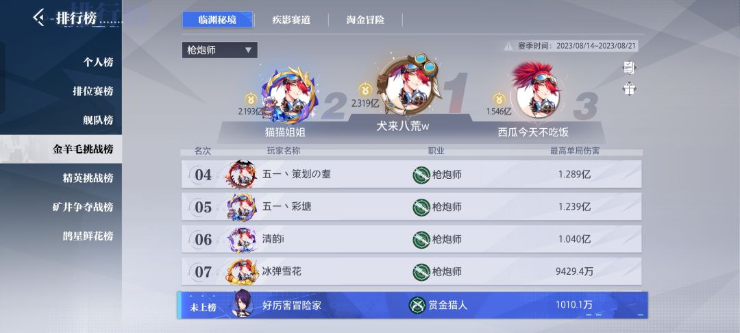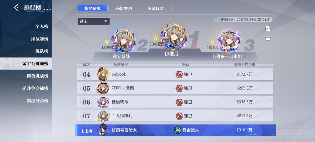 镰卫7万战力差距太大不参考。榜2 5.4那样。伤害1.3e
