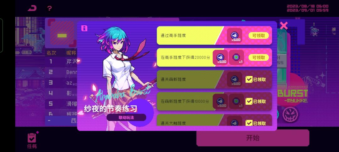 众所周知,今天早上6点终于上线联动活动了,最大的变更就是出了一个新关卡“纱夜的节奏练习”