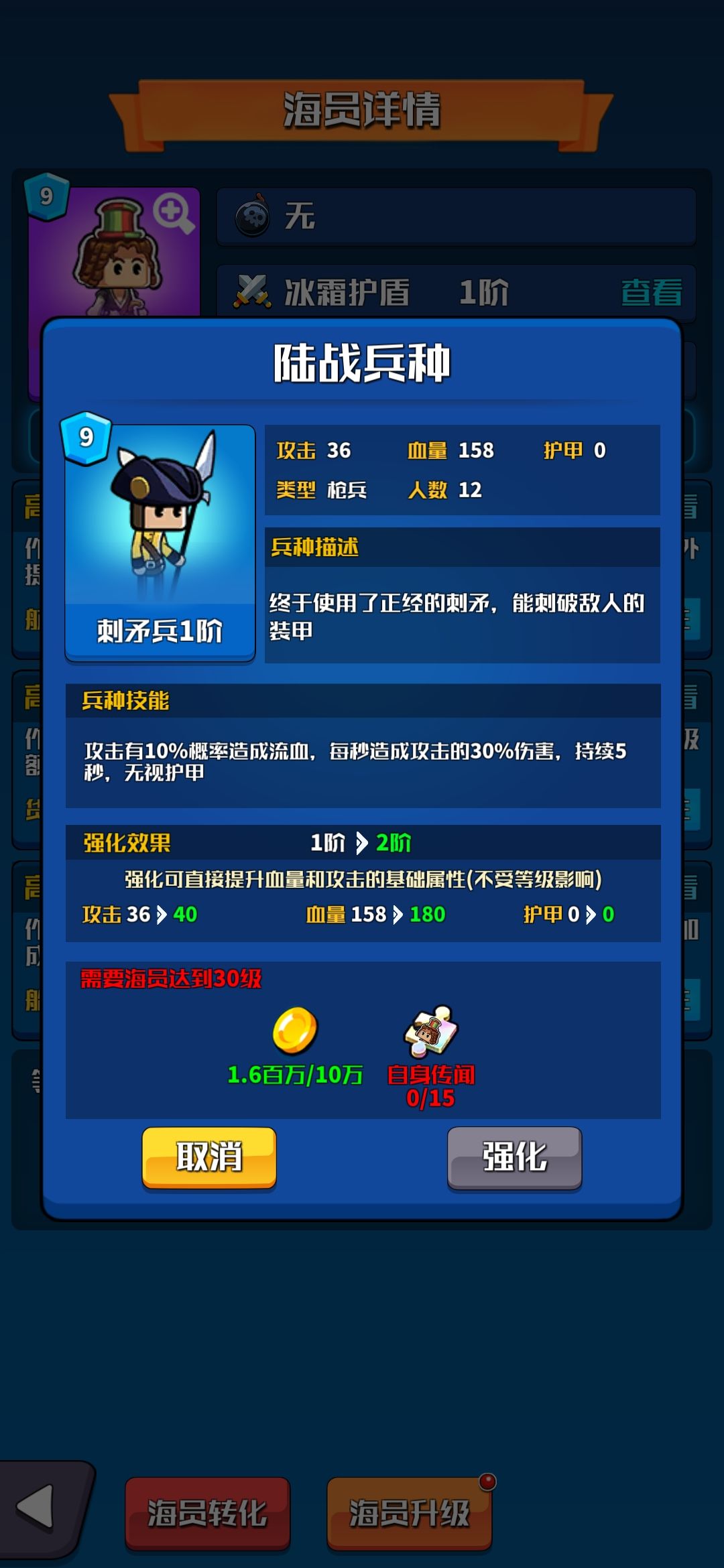 除了步兵、盾兵以外的兵种是没有护甲的!所以对于前排来说步兵耐揍一点,步兵必不可少,如果是0氪或者微氪亦或是运气不好抽不到卡的航海士来说,可以先升级别的探险队长,比推荐等级+2级、数量+1队就可以轻松碾压了。