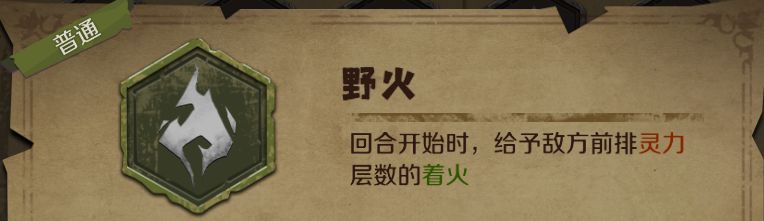 专属卡牌“焚荒”能提供一个稳定的全体着火buff,配合初始天赋“巫医手段”可以在前期拥有较强的恢复能力