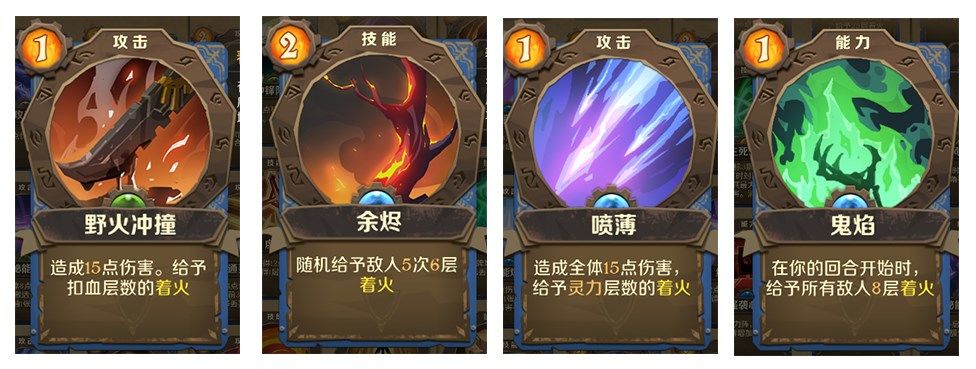 当出现“着火”字段的卡牌时,可以无脑拿牌,通过快速叠加着火层数烧死敌人