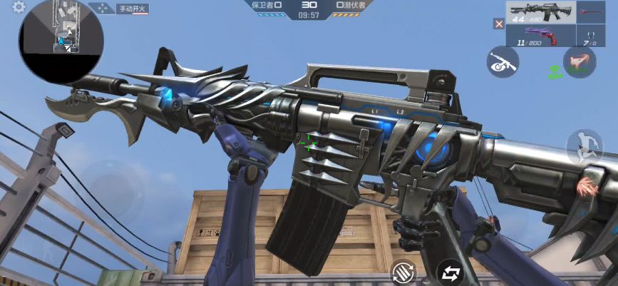 这把武器的外观颜色和M4A1-雷神比较相似,枪身银灰色为主,枪口同样装配有消音器,枪身镶嵌了两颗能量球,似乎在不断的给M4A1-千变输入神秘的力量一样,点击看枪功能,看枪的同时还会有口哨声音,仿佛接下来的战斗对于M4A1-千变来说,完全可以轻松拿下一般。