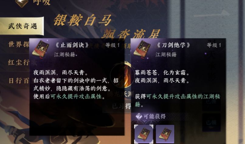 17)大吉奇遇【剑雨刀霜】:呼吸系统【武侠奇遇】里第二天解锁完成之后,可以获得永久提升攻击属性的书籍。