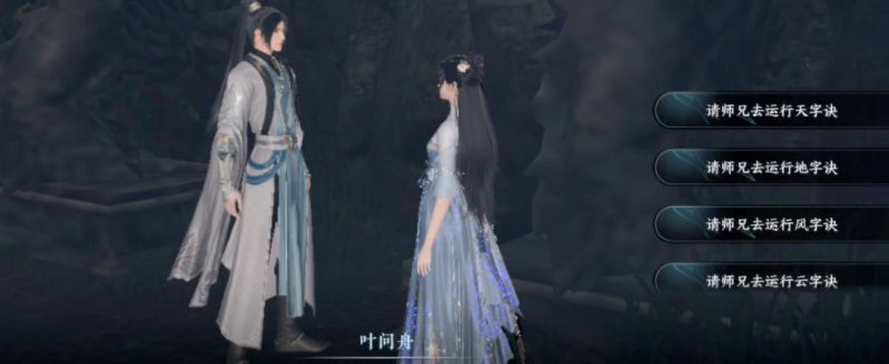 和NPC对话的时候需要先选择让对方去运行口诀,然后你自己也要靠近石碑去运行口诀,洞里八块石碑,每块石碑上都有对应的一个字。