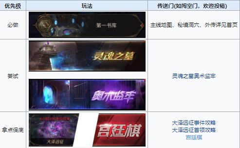 b.玩法性价比(收益/耗时):【秘境洞穴】>【推图、外传】>【无晴之海】>【破碎之境】>【宫廷棋】>【大泽远征】>【奥术监牢】>【灵魂之墓】。