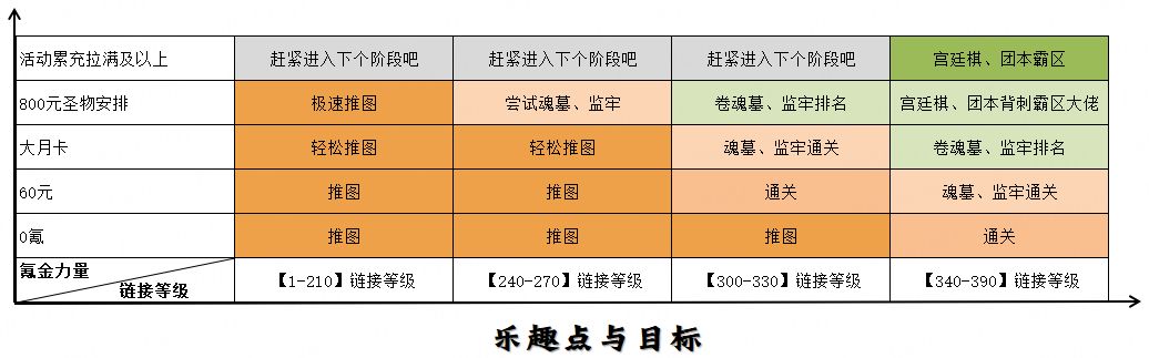 阶段目标:主线、秘境、外传、海图全通。 魂墓1000层,争取较好的排名获取纹章盒子;奥术监牢层数尽可能高,一次性奖励可以不用太卷。