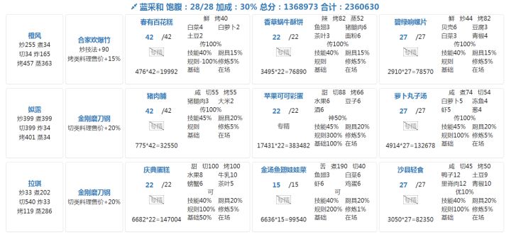 ⭐️更低基修情况请自行调换更合适的(高分菜谱,高分厨师)。
