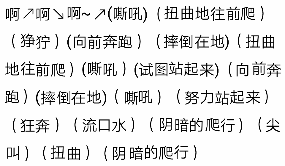 啊啊啊!!(尖叫)(扭曲)(阴暗的爬行)(扭动)(翻滚)(阴森的低吼)