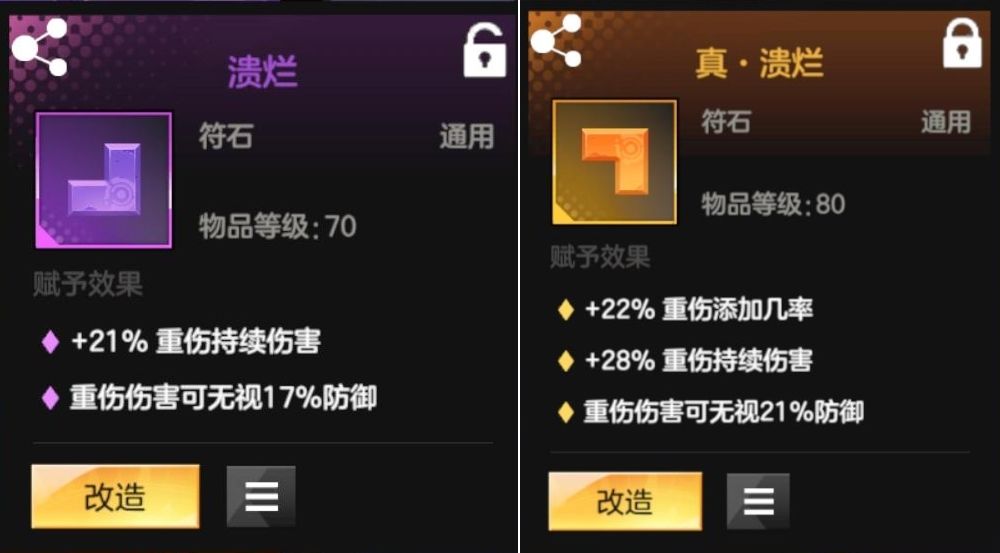 溃烂是直接加强【重伤】的,和【高阶破击】这个契约石可以搭配食用。