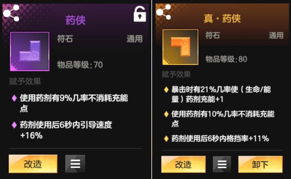 使用药剂后有几率不消耗容量,同时增加防御、引导速度等属性,可以搭配【流浪药师】天赋使用,大幅提高药剂的充能速度。真药侠还能在暴击时获得药瓶充能。我们一般是在击败怪物时才能获得充能,有了这条属性,可以在挑战boss时提高续航能力。