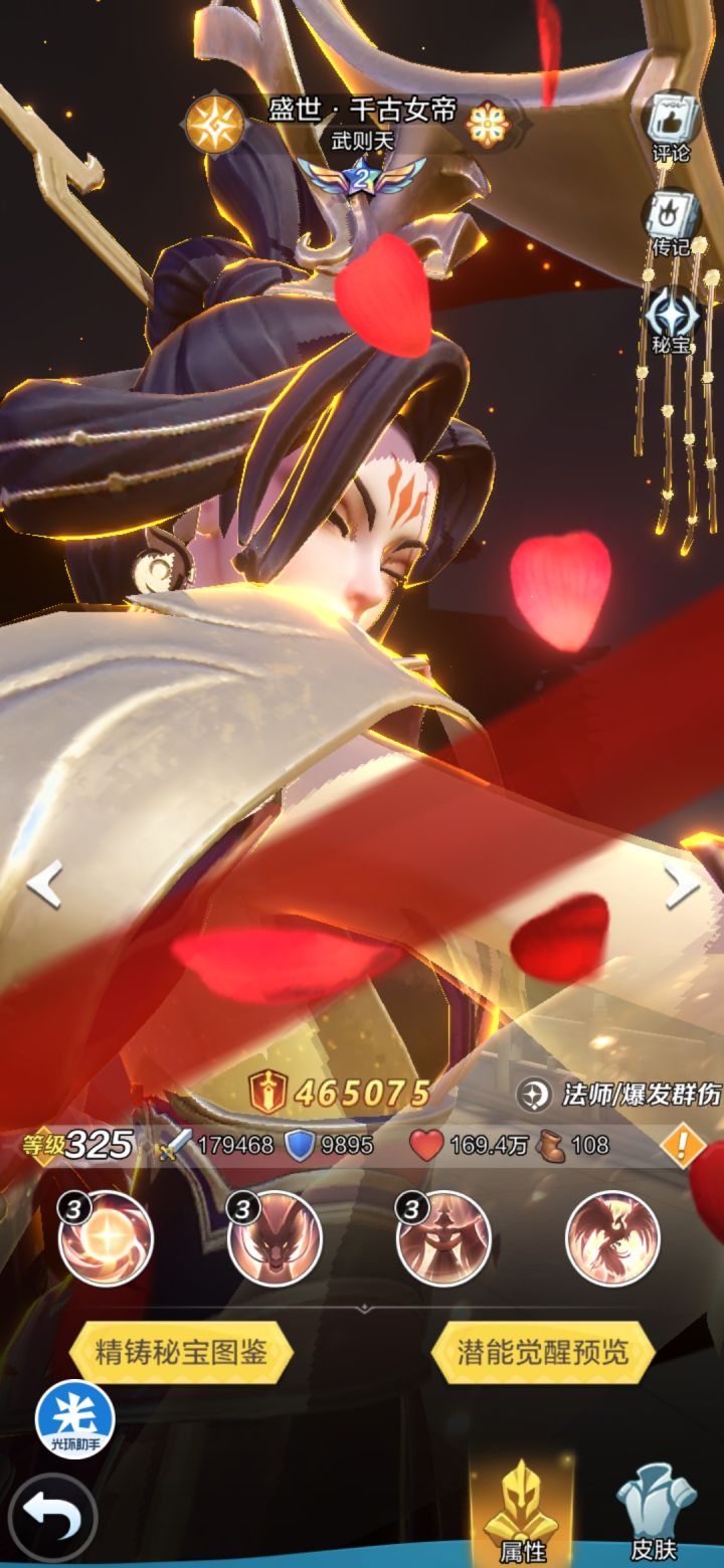 盛世最后大C法师武则天(千古女帝),技能全点输出了,但现在还感受不出暴力输出,但过传记确实厉害,1V5。