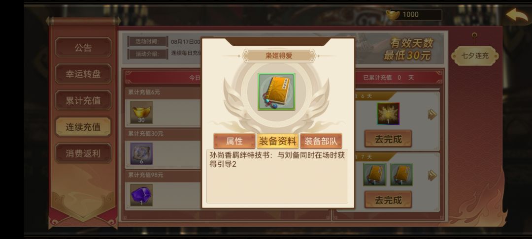 让行动完毕的友军再动,并回复hp/mp,若持有专属,则获得★联姻技能,在以上效果同时给予五维增益buff(即军神效果)。