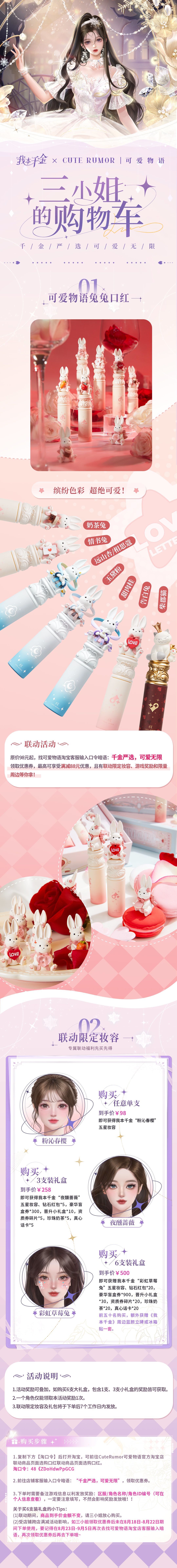 甜美可爱的兔兔口红,全新的多款联动妆容,尽在三小姐的购物车!
