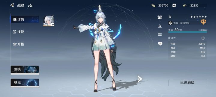 四星可用,满星加队友爆伤前期优先级靠后,烙痕带自动化栽培,模组四怒涛加二直击。主拉速度和攻击,其次生命防御。