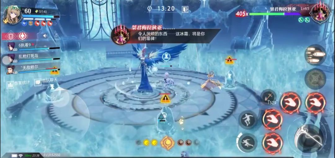 机制5 大招(冰)(高危):同机制3(火)召唤冰墙领域和水晶,并将玩家传送到四个不同位置,可等待冰锥砸向自己后跳跃踩向冰锥再跳过冰墙,使用终结技觉醒技决战技攻击水晶即可,团灭机制和机制3(火)相同。注意事项:1.可以使用挑飞加二段跳组成三段跳直接跳过冰墙 2.如果自己附近有墙体较低的冰墙可以从那直接小跳到中间,增加容错率 3.如果跳跃失误不要把准备落地的冰锥引到已经存在的冰锥上,否则两个冰锥都会消失