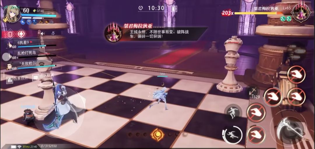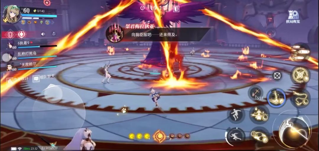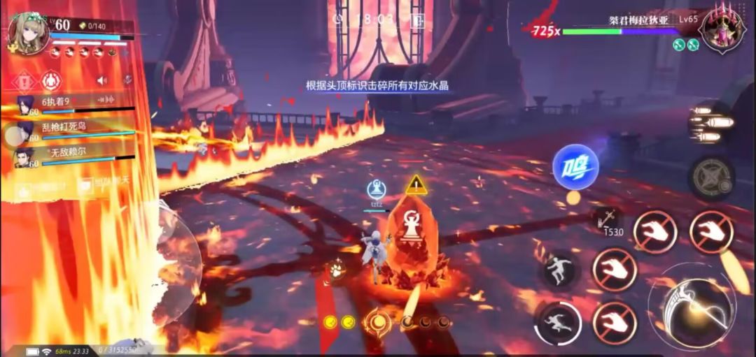 机制3 大招(火):同时释放激光(机制1)和火墙,并轮流对六个区域中的三个区域进行地板灼烧(可用滞空规避伤害),对全场玩家释放机制2并朝固定位置放置与玩家图标相同的水晶(血量比机制2更高),所有玩家需要打破自己对应图标的水晶,机制持续时间30秒,如果有玩家未击破自己的水晶将释放团灭技能。注意事项:1.低战力玩家(4.4w)需要使用终结技和觉醒技才能击爆水晶,可外加宠物技能;高战力玩家释放一次觉醒技即可。2.如果不会长时间滞空规避伤害的玩家可以站在场地中间根据火墙的升降进行跳跃到外部区域,当可以前往一个区域的火墙降到最低时那片区域是不会产生灼烧地板的,人马和主教棋子会固定出现在外围(不相邻),战车和士兵棋子会固定出现在中间区域的两侧,只需要等待激光技结束后再等待自己的水晶所在区域灼烧结束后击破即可。特别注意中间地板的灼烧会在技能释放15秒后解除,持战车和士兵的玩家过后再去击破即可。3.如果自身觉醒技能处于冷却状态可以选择跳如火焰进行自杀来复活刷新技能打爆自己的水晶,否则会导致团灭。4.紧急措施:如果队友在该阶段失误可以使用紧急措施,使用挑飞加二段跳跳至高空处,可以吃到自己差不多残血的状态的伤害规避死亡。