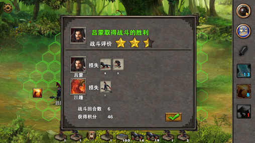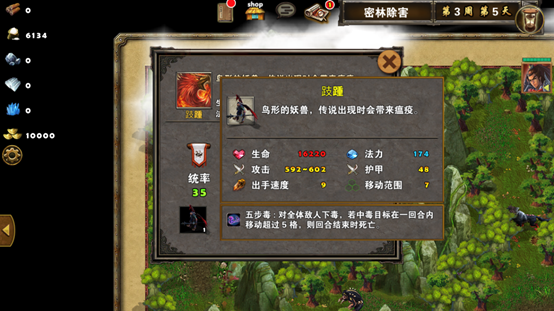 最后对抗BOSS需要招募野怪分担一些伤害,BOSS本身攻击不高,注意己方单位每次移动不超过5格即可(会即死),BOSS会放毒雾,范围内掉血,但毒雾的伤害也不算太高,注意走出毒雾,但不要移动超过五格即可。