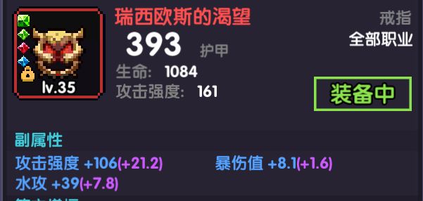 获得10%移动减幅,20%护甲增幅,35%全伤