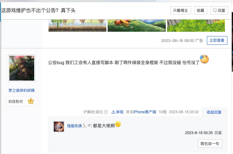 利用工会币刷口袋延长 装备 饰品升级打造,官方不闻不问 不作为,现在东西还在,意思是刷的少没事吗,现在工会系统修复了,那些恶意利用bug的人东西都没回收,官方的态度呢,还是不管了?还是充了点钱就没事?那些饰品几十100级的,依然逍遥,官方是不管吗,态度呢,直接领先百分之99的玩家,希望大家顶起来。还有很多绿装刷了没戴的放仓库,官方不看不回复不处理,三不,准备这样糊弄过去吗?[微笑]这么大个公司没能力处理吗,以为广大玩家不知道吗,[微笑]有心悦或管家的也可以反馈